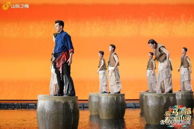 在本屆山東春晚中,舞劇《大染坊》以山東傳統(tǒng)印染工藝為創(chuàng)作內(nèi)核,將非遺技藝與現(xiàn)代舞蹈語匯完美融合。舞蹈將傳統(tǒng)手工業(yè)的細膩與厚重具象化。劉迦等舞者以精湛的肢體語言,演繹著匠人 “擇一事終一生” 的堅守,每一個轉(zhuǎn)身、每一次抬手,都仿佛在訴說老濟南染坊里的歲月故事。水上舞美布景與舞者的衣袂交相輝映,宛如一幅徐徐展開的齊魯印染文化長卷,讓觀眾在舞步流轉(zhuǎn)間,觸摸山東非遺的溫度與東方美學(xué)的神韻。