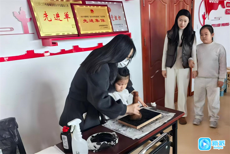 新派訊 “來,接下來我們要刷墨了,墨刷得均勻年畫才清晰?!?月6日,在濰坊市寒亭區(qū)寒亭街道運河西街社區(qū)活動室,來自古寒薪傳非遺站的張鈺琳老師正握著孩子的手細細地拓印著年畫,活動室里年味濃濃、墨香陣陣。不一會兒,一幅寓意吉祥的年畫便躍然紙上?!巴郏±蠋?,年畫好漂亮!”來參加活動的劉子菲看著手中的年畫高興地說。