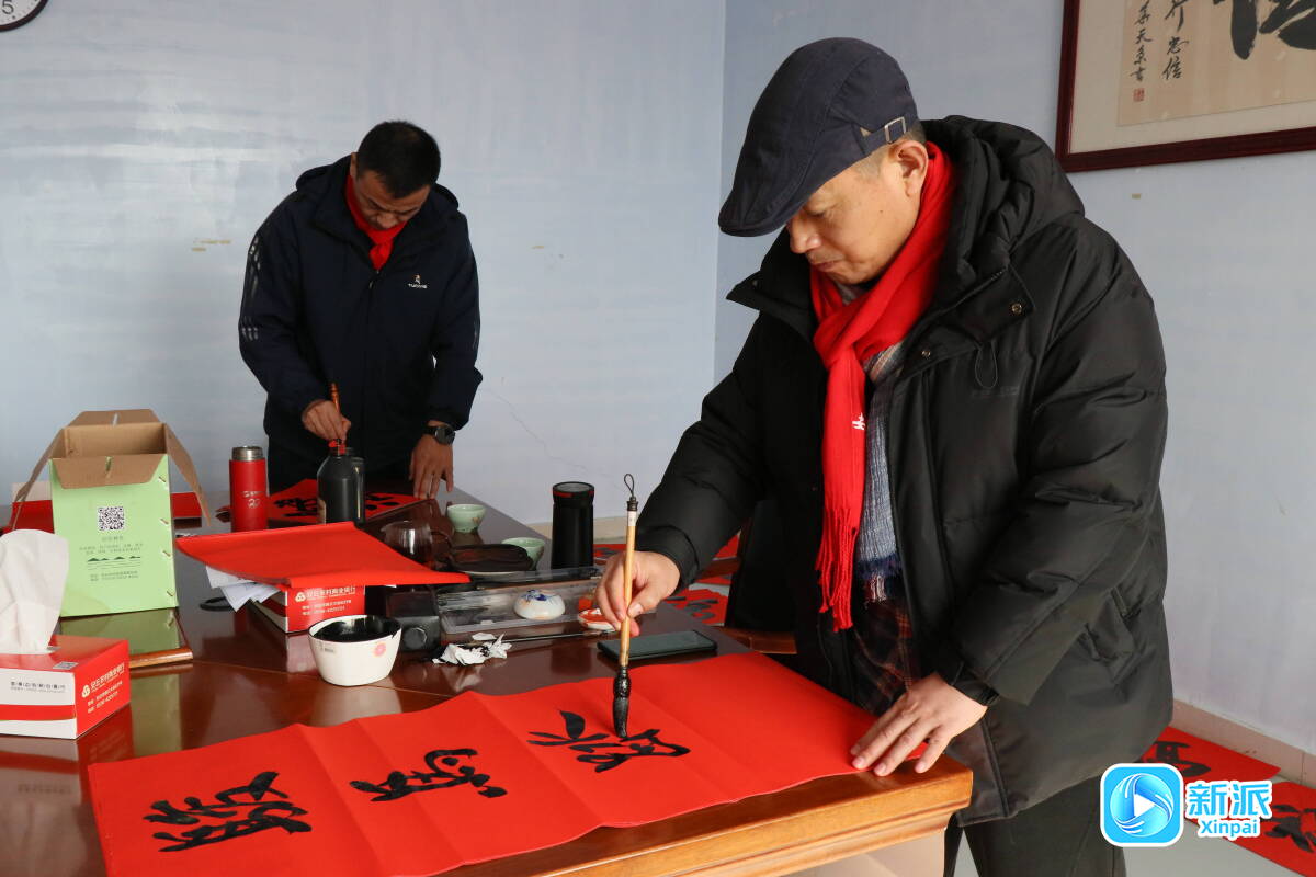 新派訊 2月9日,安丘市藝術(shù)家寫(xiě)春聯(lián)送祝?;顒?dòng)走進(jìn)山東魯勝食品有限公司。上午9點(diǎn)多,安丘市美術(shù)家書(shū)法家協(xié)會(huì)的志愿者們就趕到位于新安街道李家下埠村的魯勝食品公司,揮毫潑墨,為企業(yè)和職工寫(xiě)春聯(lián)、送畫(huà)作,表達(dá)新春祝福。