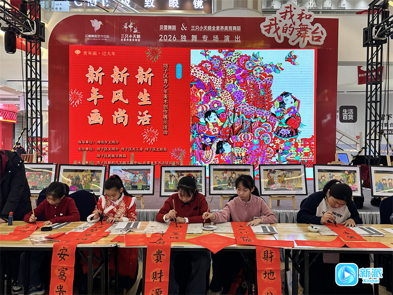 新派訊 新春啟序,年味漸濃。2月10日,濰坊市坊子區(qū)“新生活·新風(fēng)尚·新年畫”青少年美術(shù)創(chuàng)作展示活動(dòng)在坊子泰華城正式啟動(dòng)?;顒?dòng)以書畫藝術(shù)傳承中華優(yōu)秀傳統(tǒng)文化,以非遺元素厚植節(jié)日內(nèi)涵,處處洋溢著喜慶祥和、文明向上的新春氛圍。