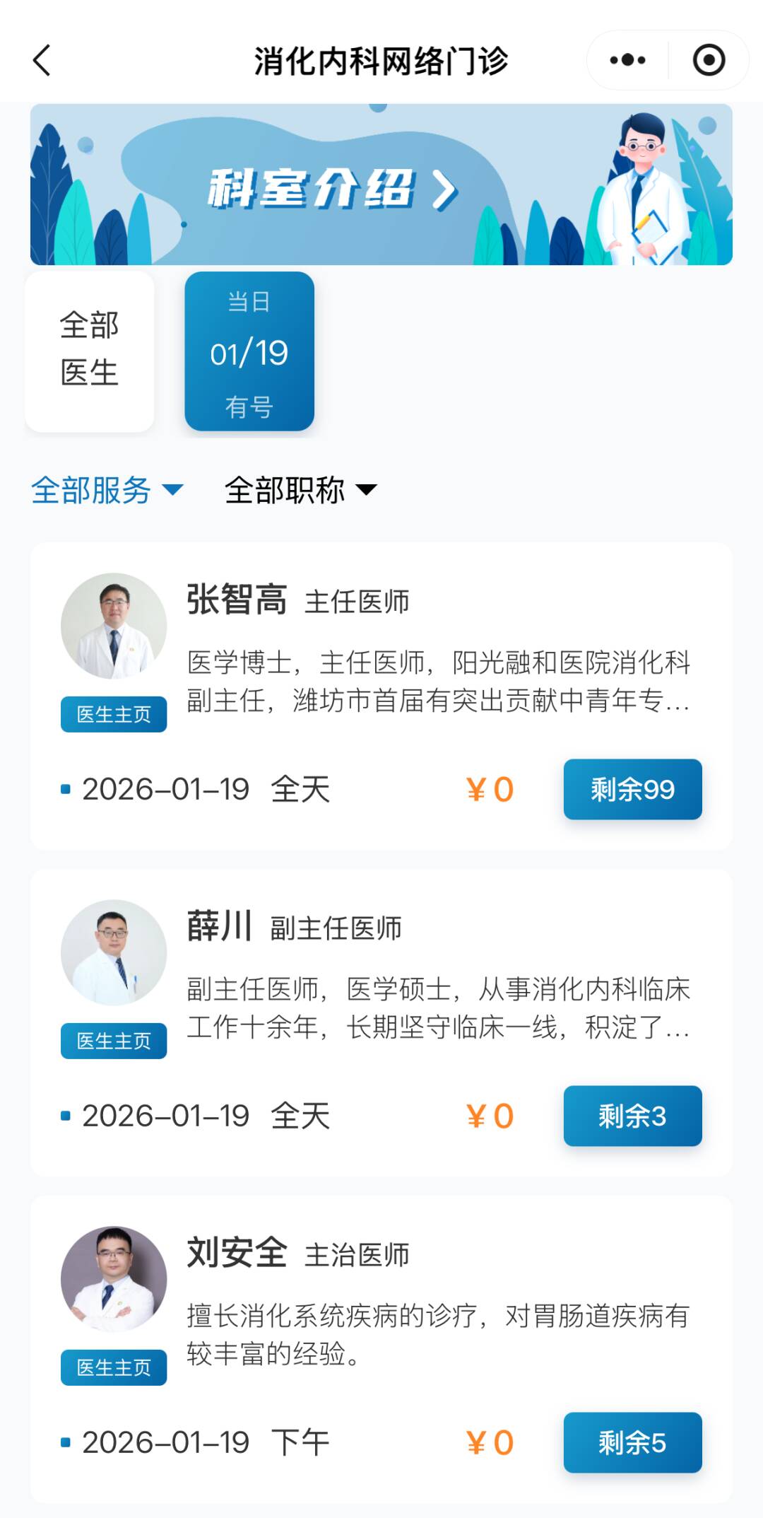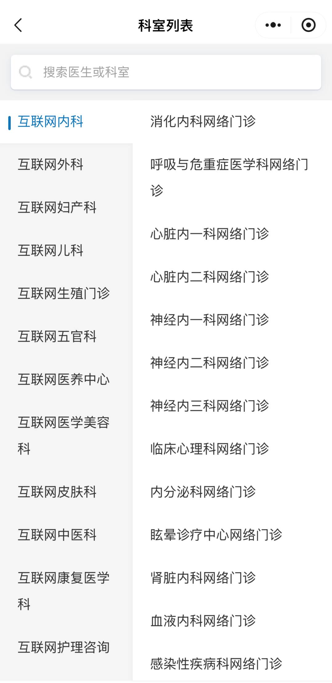 +進(jìn)入科室頁(yè)面,選擇問(wèn)診醫(yī)生