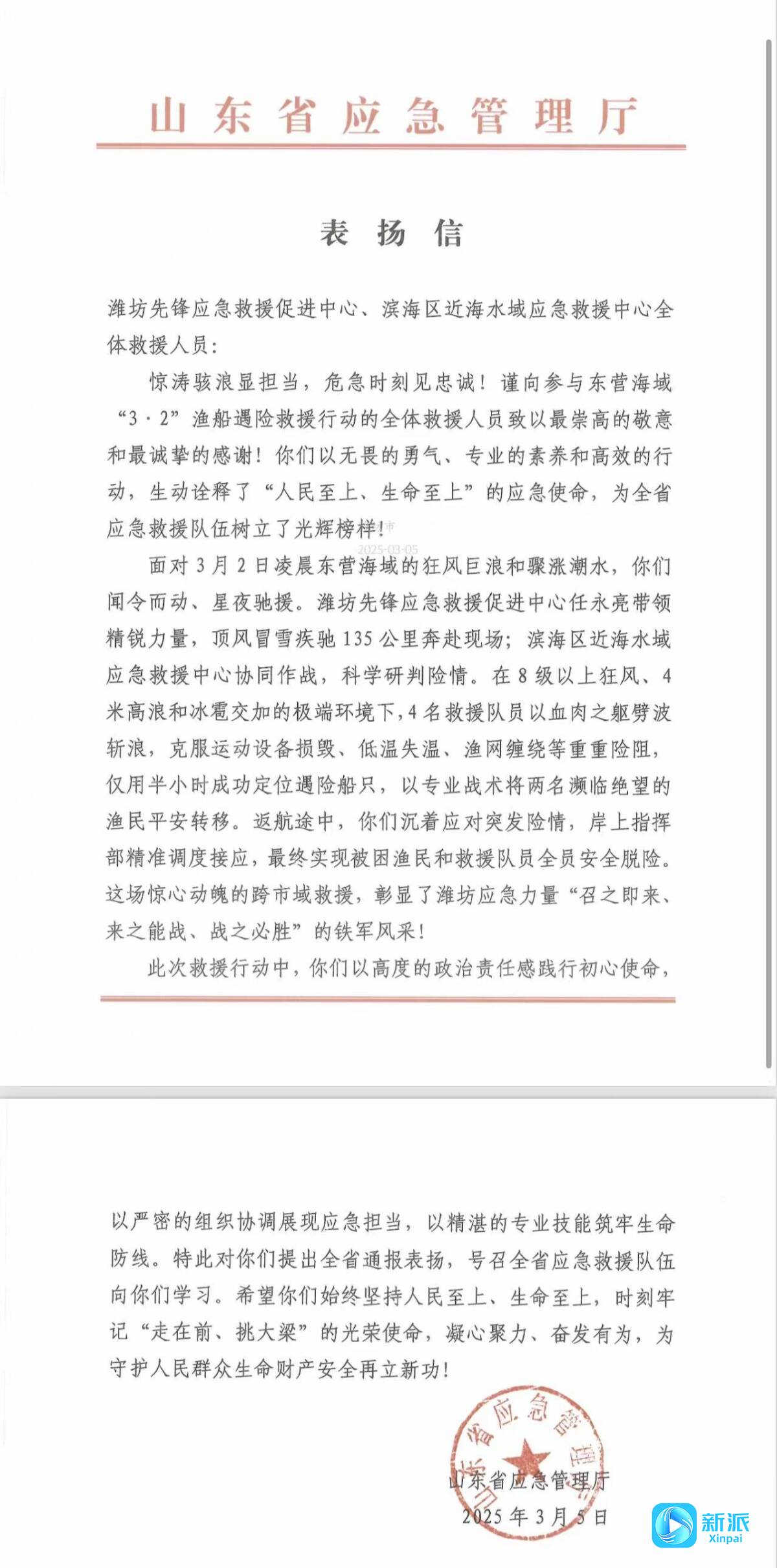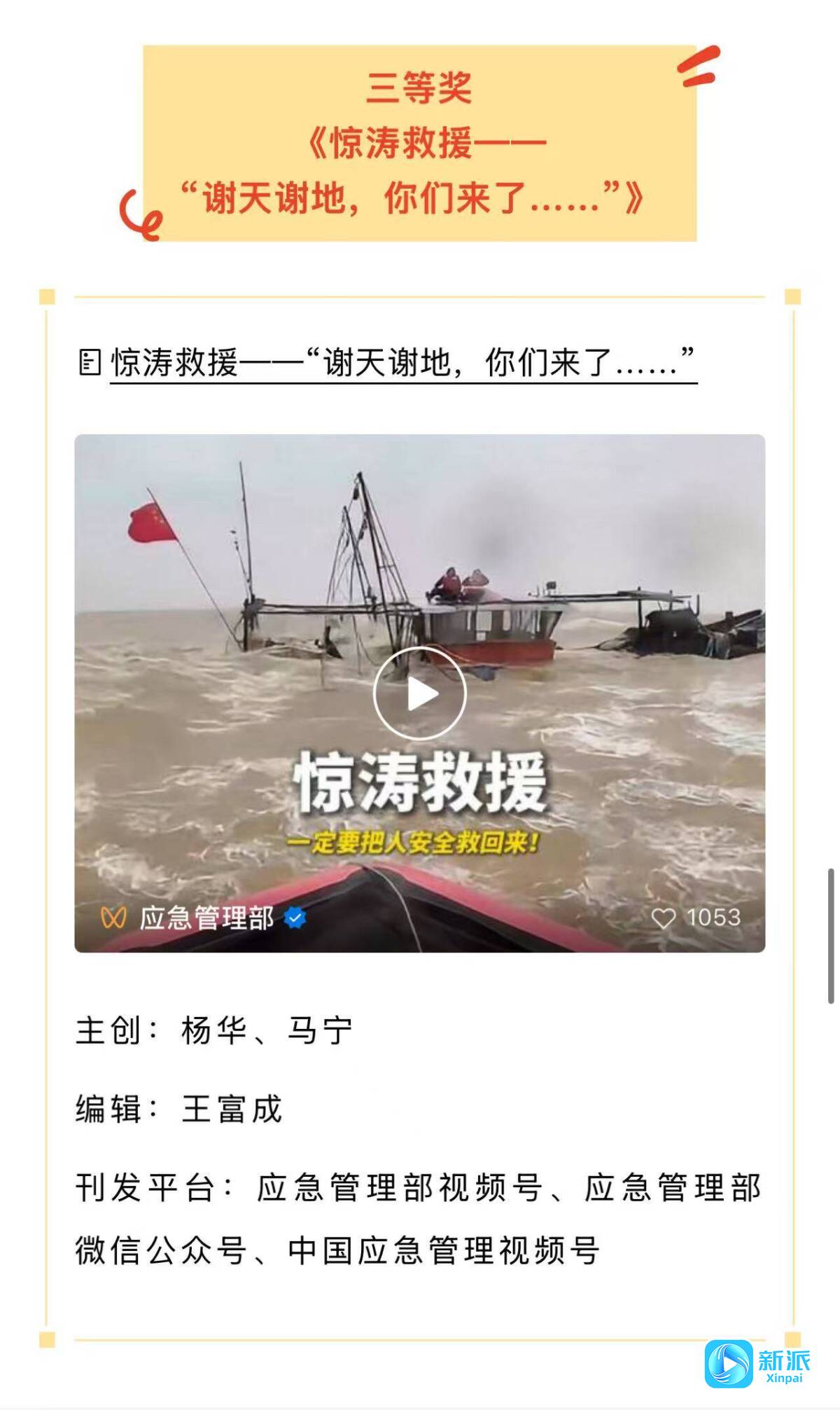 新派訊 近日,中國(guó)應(yīng)急管理報(bào)社2025年十大好新聞評(píng)選結(jié)果公布,濰坊市應(yīng)急管理局報(bào)送的《驚濤救援——“謝天謝地,你們來(lái)了……”》榮獲三等獎(jiǎng),以真實(shí)救援故事展現(xiàn)濰坊應(yīng)急擔(dān)當(dāng)。
