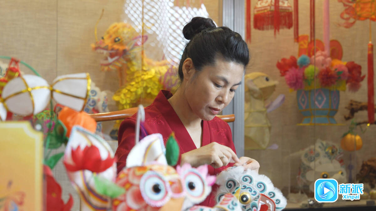 李梅在制作花燈。
